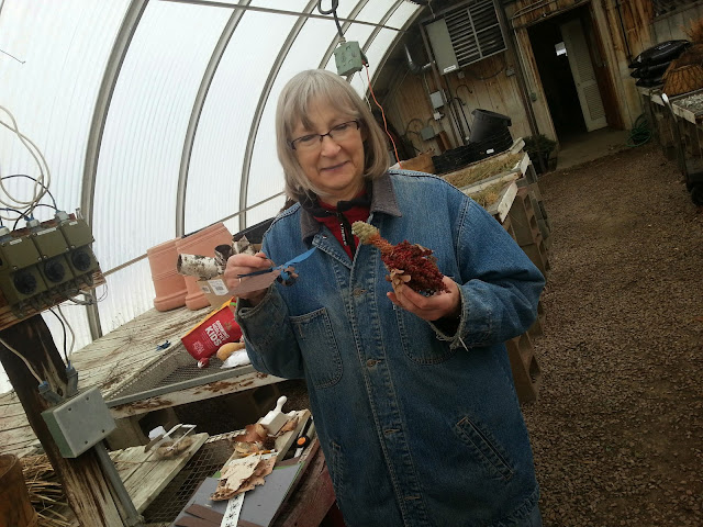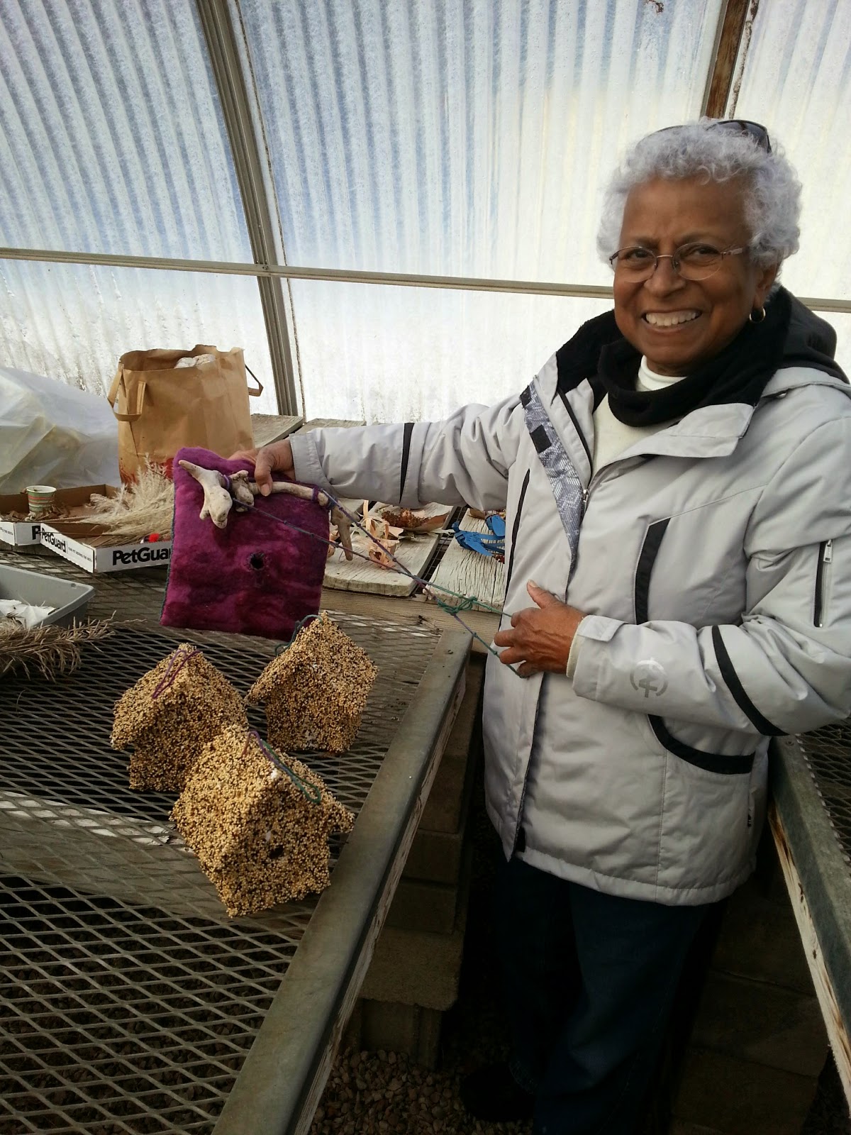 Veronica’s been working on these adorable birdseed houses, along with her felted birdhouse.